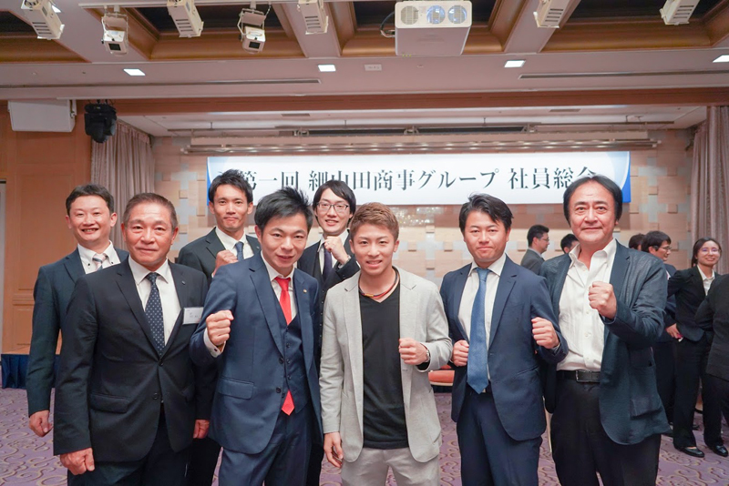 従業員同士の交流、これまでの事業の振り返りや今後のビジョンを共有する目的で社員総会を実施しています。芸能人のゲスト出演や豪華な商品の抽選会もあり大いに盛り上がります。第1回社員総会にはスペシャルゲストとしてボクシング世界3階級制覇王者「井上尚弥選手」にお越しいただきました。