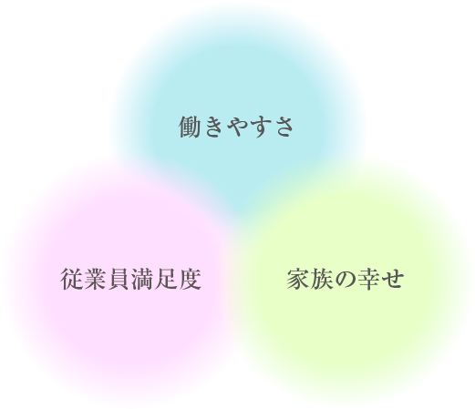 | 仕事と余暇の充実をともに実現し、従業員と家族の幸せを追求します。 | |||||
